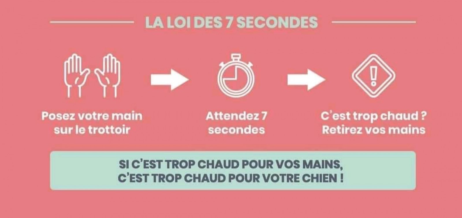 ATTENTION les grosses chaleurs sont revenues On ne laisse pas son chien dans la voiture On fait attention au bitume qui peut être brûlant On ne pars pas en promenade sans prendre une gourde d eau pour le chien
