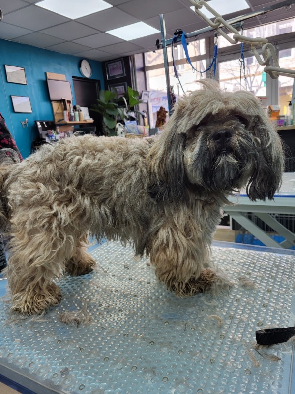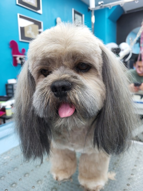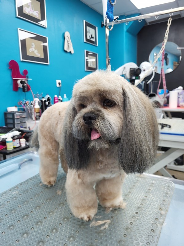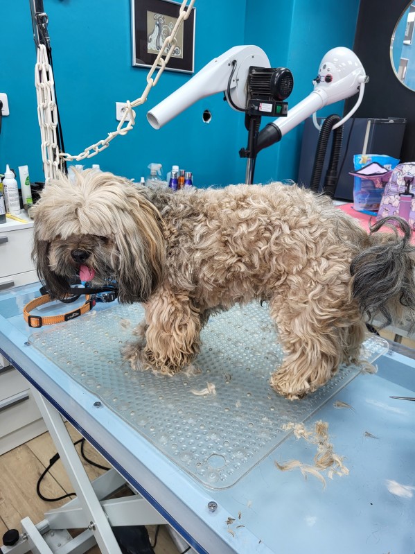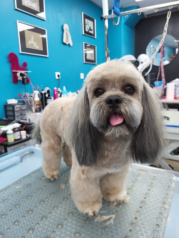 La coupe est dite Nounours ou Peluche . Le chien est entièrement réalisé aux ciseaux .